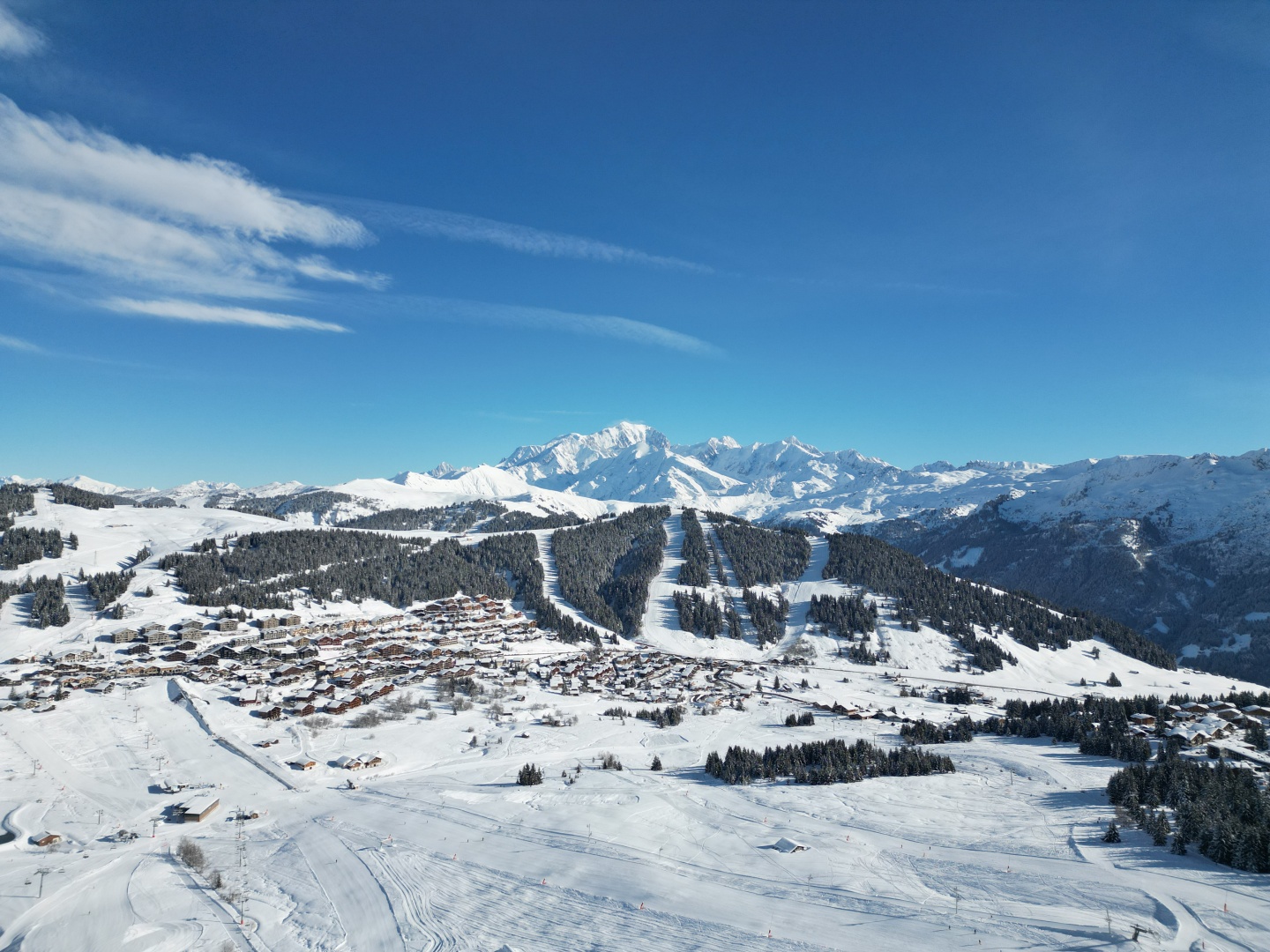 Les Saisies with 52 trails, 10 grooming machines, 30 lifts, 1 snowpark, 2 boardercross, 70 snow cannons, 70 km of tracks.
