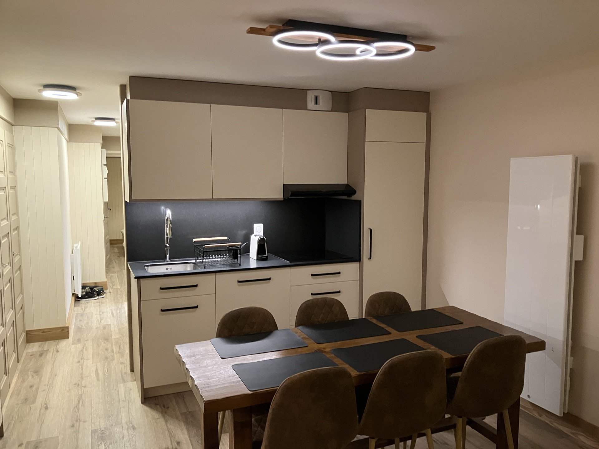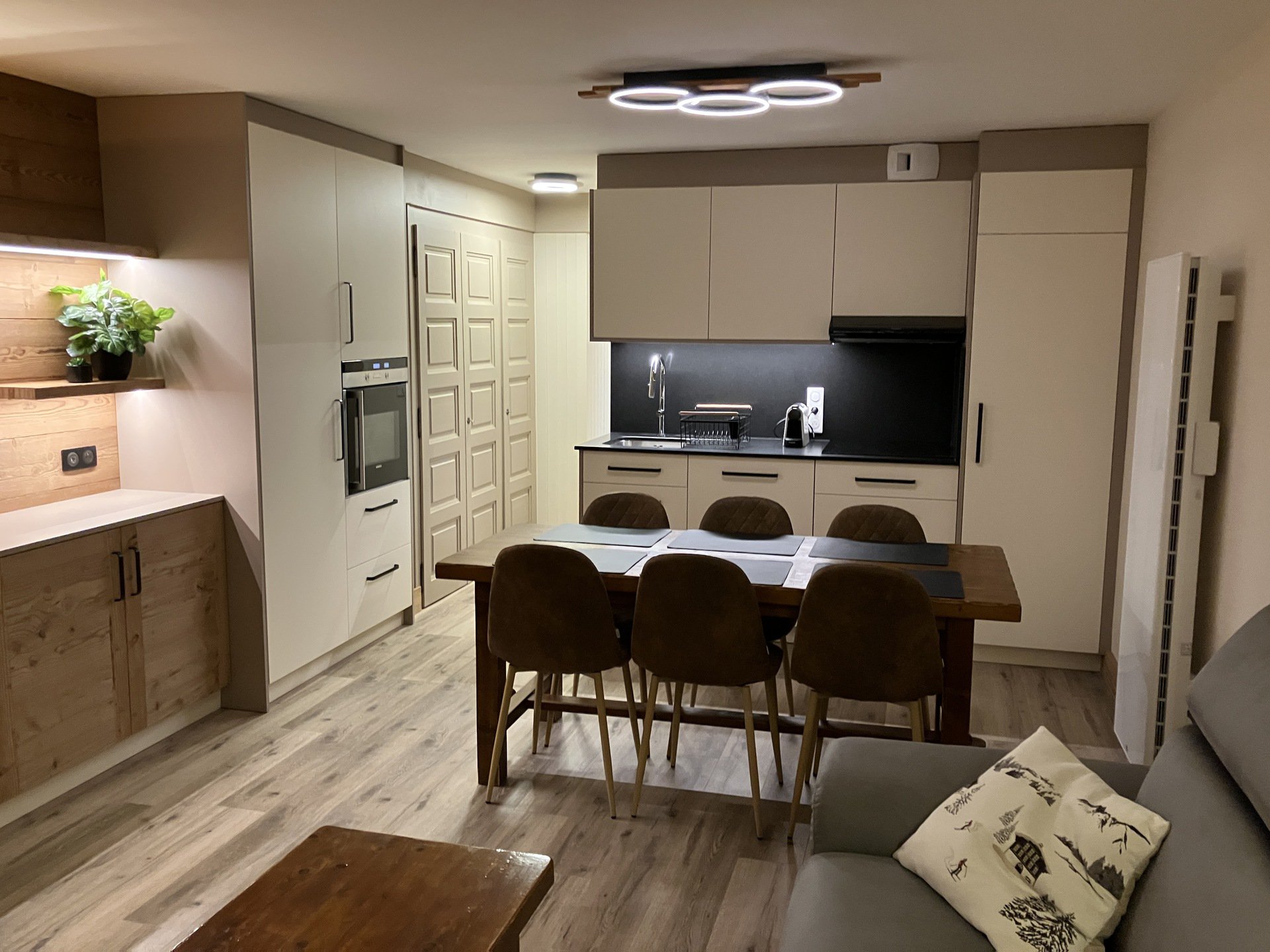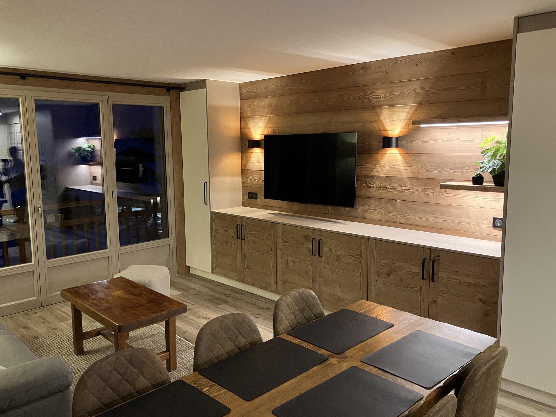 Grande résidence située entre les 2 ronds points du coeur des Saisies face au Boulanger Foyolle au 449 av des JO. Style montagne avec ascenseurs. Commerces directs, pistes 250m.