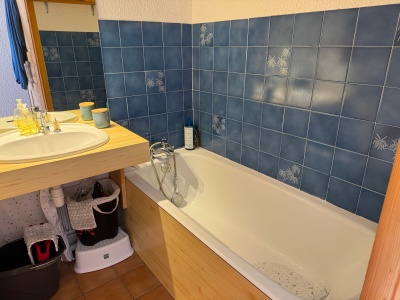 - Une salle de bain avec baignoire